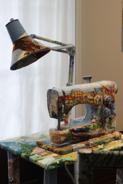 Symaskin täckt av stickning